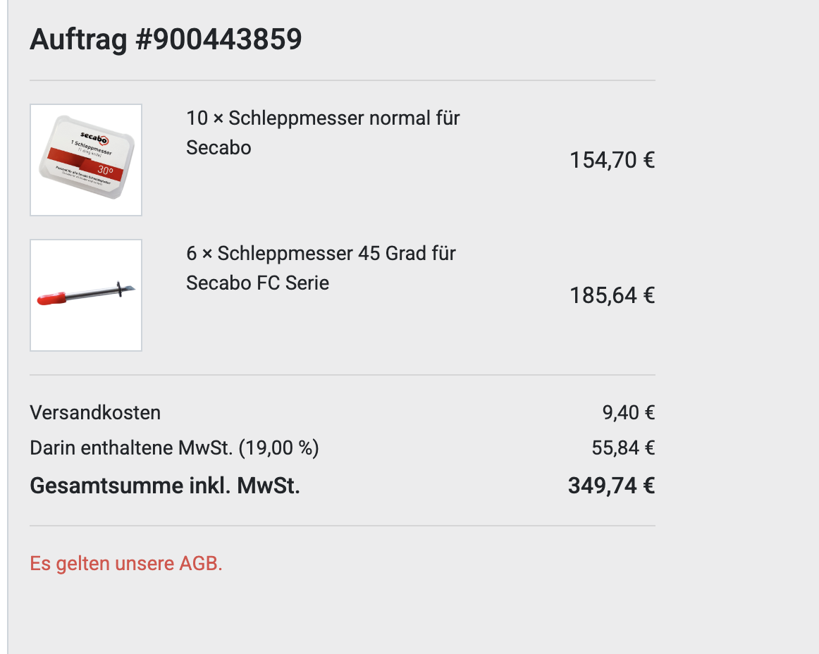 | 1 | Schleppmesser 45 Grad für Secabo FC Serie 退 23.93歐x37匯率=$885 |