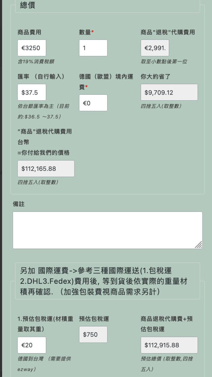 1. 德國迷客制詢價(退稅/代購)商品 "無需"登入本網帳號